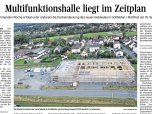 Die Multifunktionssporthalle wächst und unsere Baustelle wird jeden Tag komplexer – denn mittlerweile sind gleichzeitig mehrere Gewerke auf der Baustelle anzutreffen.