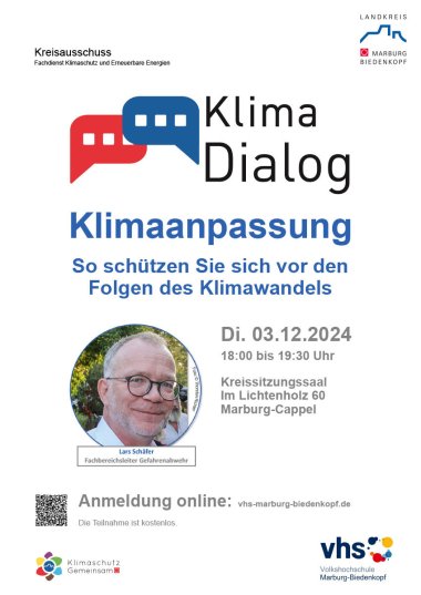 Veranstalter des Klima-Dialoges sind in die Volkshochschule Marburg-Biedenkopf und der Fachdienst Kreisentwicklung und Klimaschutz des Landkreises. Der Klima-Dialog findet am 3. Dezember um 18:00 Uhr in Präsenz im Tagungszentrum in Marburg-Cappel, Im Lichtenholz 60 statt. Die Anzahl der Teilnehmenden ist begrenzt.