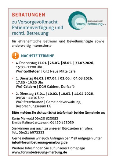 Weitere Infos finden Sie unter: www.forumbetreuung-marburg.de